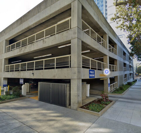 "1000 G" is located near Cesar Chavez park and the Sacramento Court House as well as City Hall. The facility is a covered parking garage with one entrance on G St.