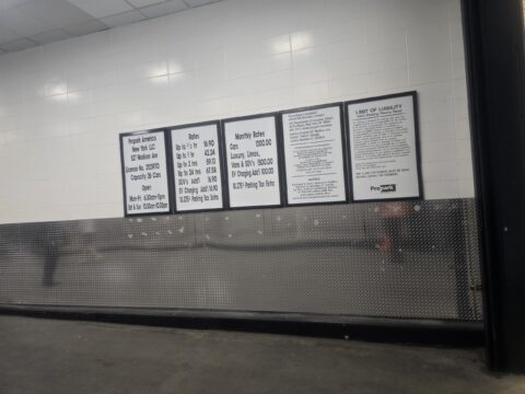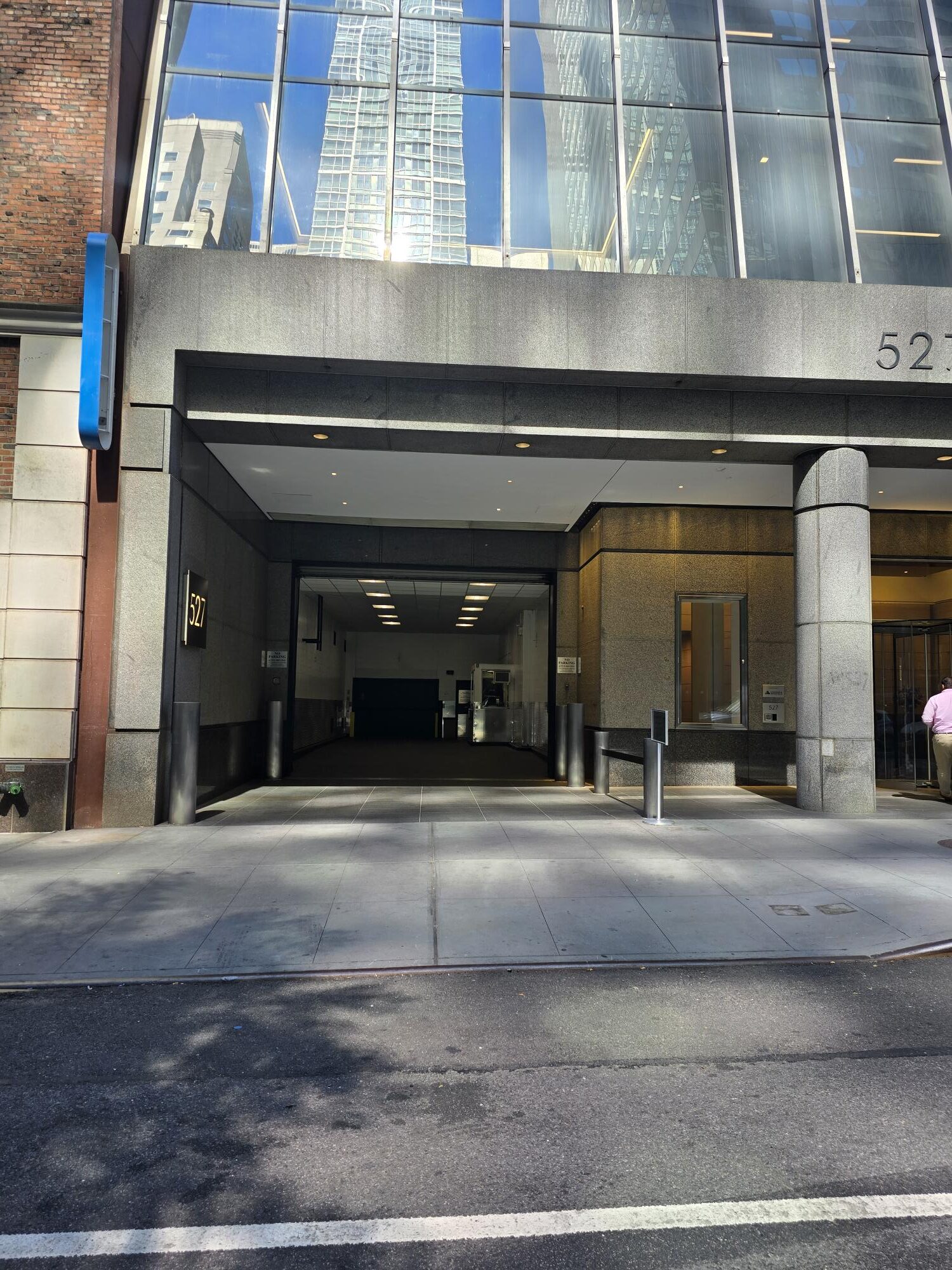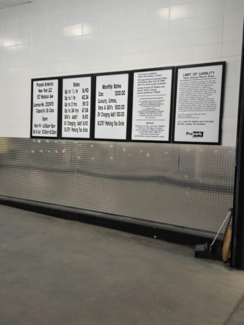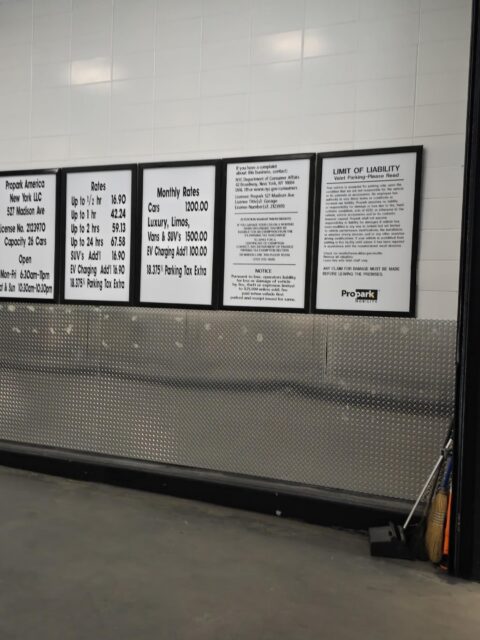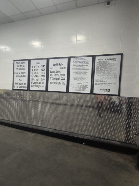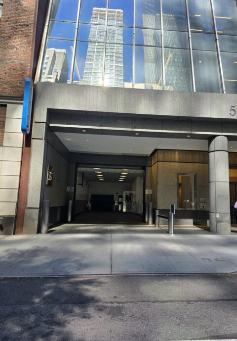 The garage entrance is located on 54th Street, between Madison Avenue and Park Avenue, just past the corner of Madison Avenue on the right-hand side. Look for the Propark signage.