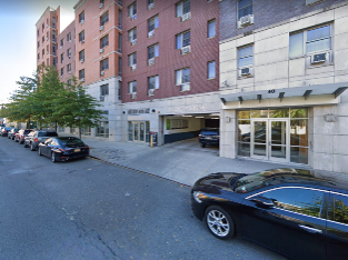 This indoor garage is located on the right (south) side of Varet Street between Manhattan Avenue and Graham Avenue. Look for a sign that reads “Public Parking” above the entrance.