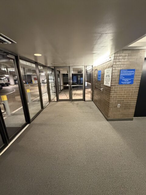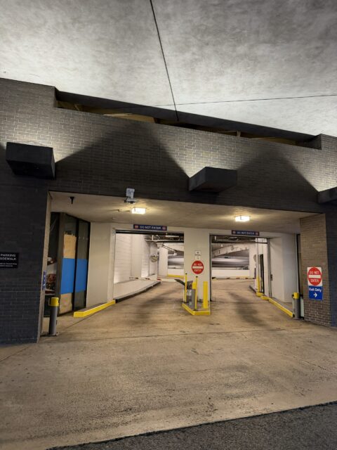 If you’re coming from I-45 (Gulf Freeway), the first entrance is Clay Street on the left. The other two entrances can be accessed by making left turns around the building, all located in the left lanes. Look for the blue sign (P) indicating the entrances.