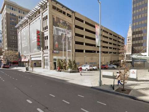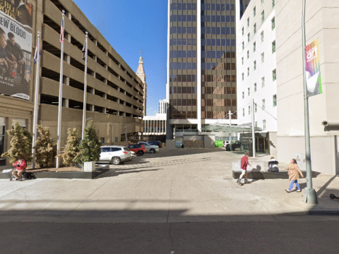 Located on Champa between 17th and 16th avenue on the righthand side. Turn onto the valet driveway just past the Renaissance signage.